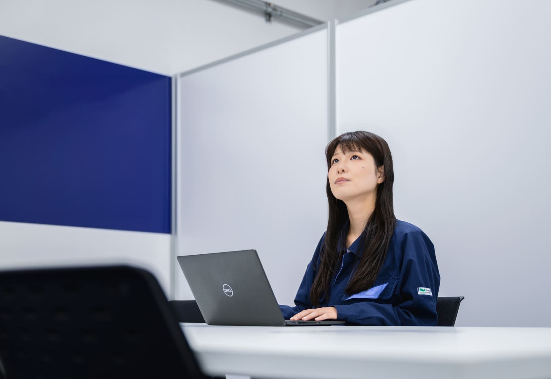 大学院で生物科学を専攻し、就職にあたっては当初化粧品メーカーの研究職を志望し内定を獲得。しかし、研究業務だけにキャリアが限られてしまうことに物足りなさを覚える。幅広いキャリアの可能性があり、さまざまな業界に対し社会貢献できる仕事を探したところ、オリックス・レンテックならばそれがかなうと考えて志望。就職活動中に当社の技術センターを訪問した際、社員の皆さんがフレンドリーに接してくださり、のびのびと働けそうな雰囲気と環境に惹かれて入社を決意。