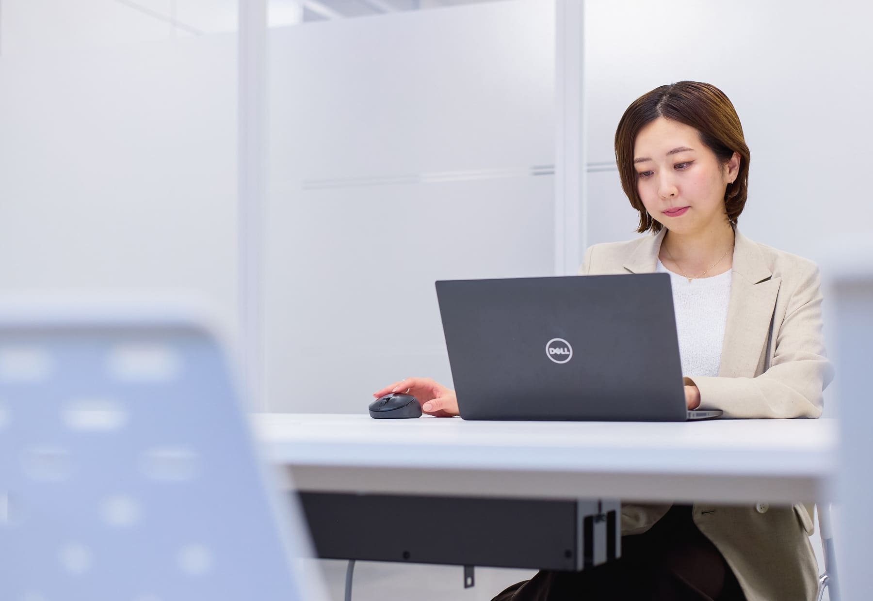 私は入社7年目にスタッフ職から総合職へ転換し、現在、当社の主力製品の一つである測定器の購買業務に携わっています。当社のビジネスモデルは、お客さまの課題に寄り添い、最適な機器を調達し、レンタルやリースという金融のスキームを通じて継続的に価値提供していくものです。
