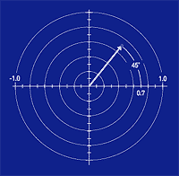 図から、長さは(振幅)はルート1/2で、角度は45度になることも分かると思います。